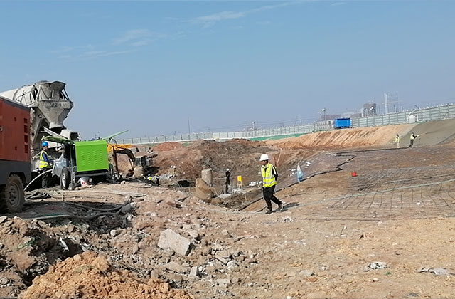 混凝土噴漿機(jī)是利用壓縮空氣或其它動(dòng)力,將按一定比例配合的拌和料通過管道輸送并高速噴射到受噴面上凝結(jié)硬化,從而形成混凝土支護(hù)層。噴射混凝土技術(shù)工藝簡(jiǎn)便,施工造價(jià)低,適應(yīng)面廣,在各種建筑領(lǐng)域內(nèi)發(fā)揮了重要作用。